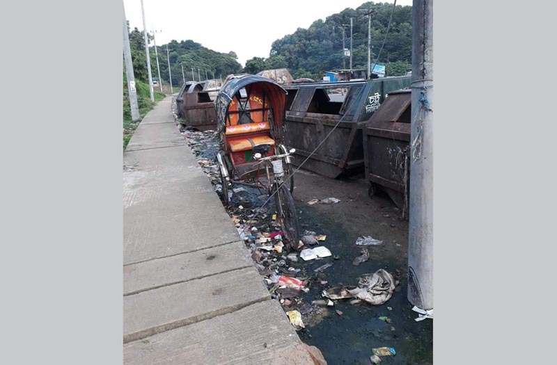 ব্যস্ত হয়ে উঠা উক্ত সড়কটির যত্রতত্র ডাস্টবিন রেখে ডাম্পিং জোনে পরিণত করেছে চট্টগ্রাম সিটি কর্পোরেশনে (চসিক)। রাস্তাজুড়ে এখন ছড়িয়ে ছিটিয়ে থাকতে দেখা যাচ্ছে ডাস্টবিন, আর আবর্জনা।