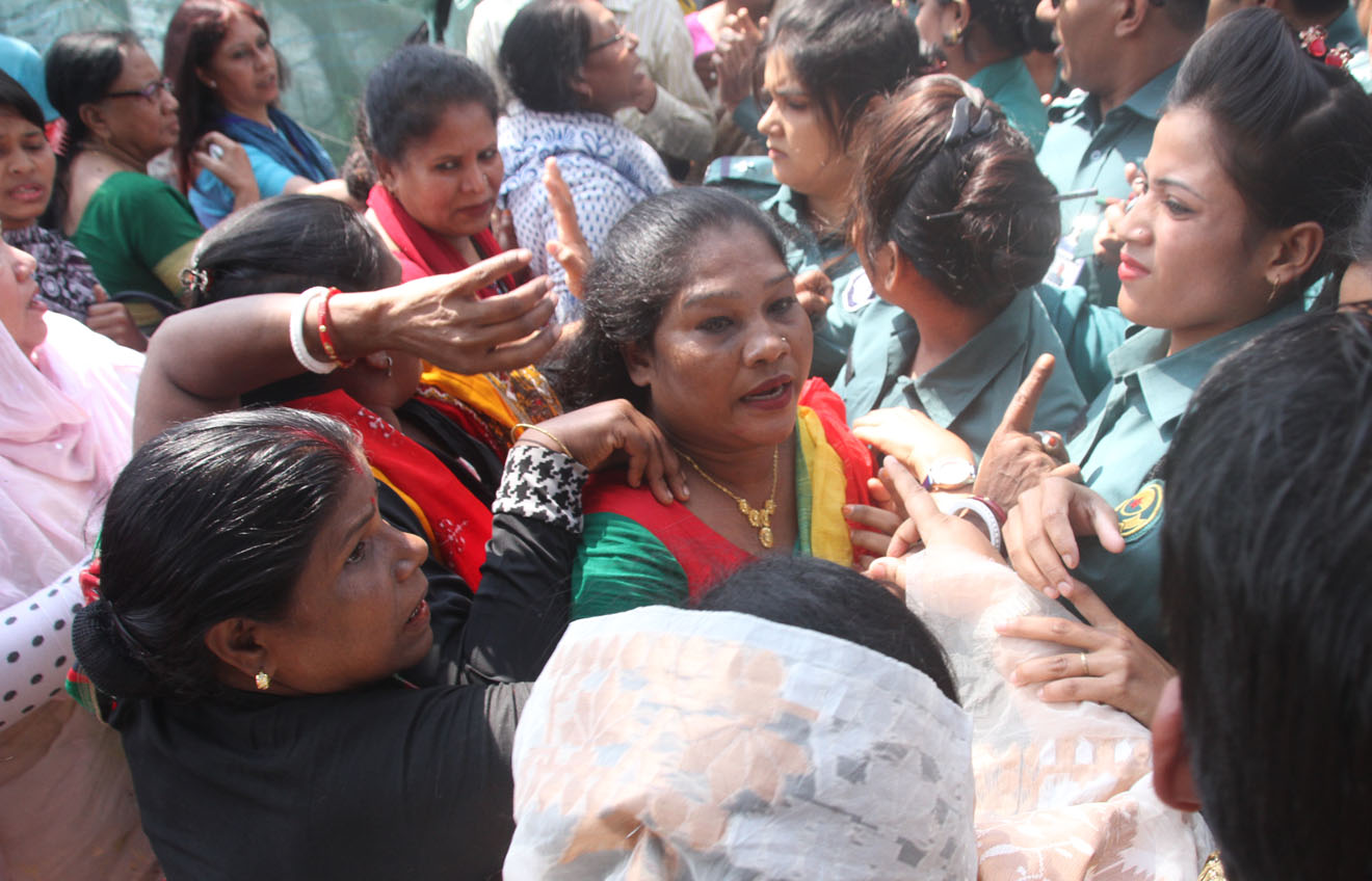 পুলিশের সাথে ব্যাপক ধাক্কাধাক্কি ও হাতাহাতির পর ক্ষোভে ফেটে পড়েন সম্মেলনে প্রবেশ করতে না পারা নেত্রী-কর্মীরা। এদের কেউ কেউ সম্মেলনের দায়িত্বপ্রাপ্ত কেন্দ্রীয় এক নেত্রী ‘ঘুষ’ নিয়েছেন অভিযোগ তুলে স্লোগানও দেন।