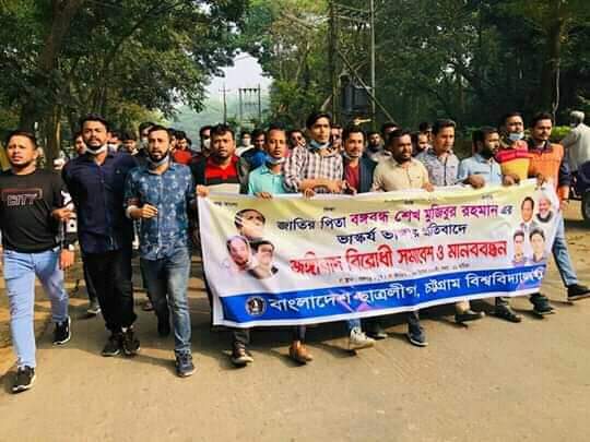 চবি প্রতিনিধি : জাতির জনক বঙ্গবন্ধু শেখ মুজিবুর রহমানের নির্মাণাধীন ভাস্কর্য ভাঙচুরের প্রতিবাদে বিক্ষোভ মিছিল করেছে চট্টগ্রাম বিশ্ববিদ্যালয় (চবি) ছাত্রলীগের একাংশ।