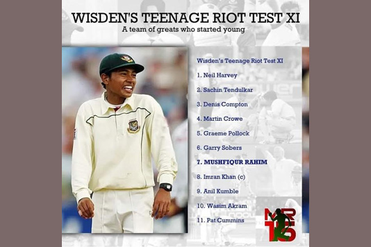 কিশোর বয়সে টেস্ট ক্রিকেটে অভিষেকের পর যারা ক্যারিয়ারে দুর্দান্ত পাফরমেন্স করেছেন এবং এখনও করছেন, সেইসব ক্রিকেটারদের নিয়ে এই একাদশ তৈরি করেছে জনপ্রিয় এই ক্রিকেট সাময়িকী উইজডেন। সেই একাদশে আছেন মুশফিক।