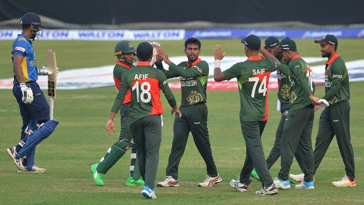 টাইগারদের দেওয়া ২৫৮ রানের লক্ষ্যে ব্যাট করতে নেমে ৪৮ ওভার এক বলে সব উইকেট হারিয়ে ২২৪ রান করে শ্রীলঙ্কা।