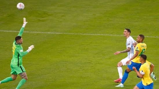 মাঠের অন্য প্রান্তে নিজেদের প্রথম প্রচেষ্টাতেই গোল করে বসে আর্জেন্টিনা। মাঝমাঠ থেকে রদ্রিগলো দে পলের বাড়ানো বল ব্রাজিল ডিফেন্ডার রেনান লোদি ক্লিয়ার করতে না পারলে ব্রাজিলের বক্সে কাছে তা পেয়ে যান আনহেল দি মারিয়া।
