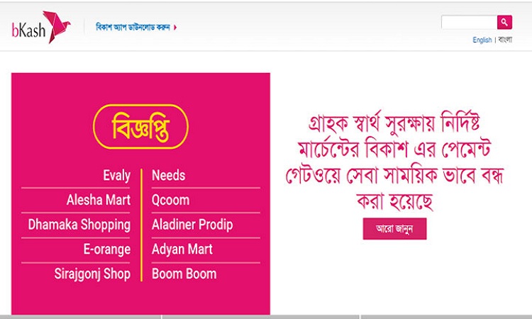 ‘এই সময়ে গ্রাহকদের স্বার্থেই কিছু মার্চেন্টের জন্য বিকাশের পেমেন্ট গেটওয়ে সাময়িকভাবে বন্ধ রাখা হয়েছে। রেগুলেটরের নীতিমালা অনুযায়ী পেমেন্ট সিস্টেম কার্যকর হলে বিকাশ পেমেন্ট গেটওয়ে আবারো চালু করা হবে।’