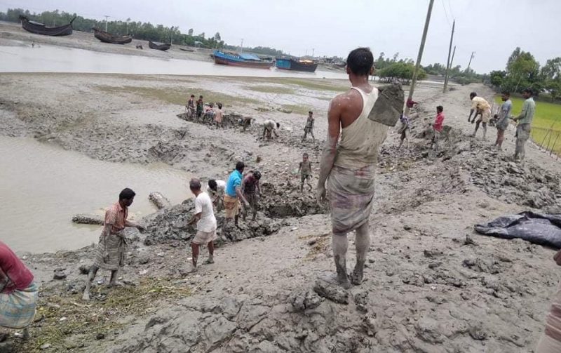মোহাম্মদ বেলাল উদ্দিন, বাঁশখালী (চট্টগ্রাম) : কোদাল দিয়ে মাটি কাটছেন, আরেক দল সেই মাটি হাতে নিয়ে ভাঙা বেড়িবাঁধে ফেলছে। এভাবে জোয়ারের পানি থেকে খেতের ফসল ও বসতভিটা নিরাপদ রাখতে বেড়িবাঁধ রক্ষায় আপ্রাণ চেষ্টা চালিয়ে যাচ্ছেন চট্টগ্রামের বাঁশখালীর ছনুয়া ইউনিয়নের বাসিন্দারা।
