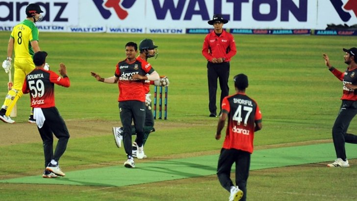 মঙ্গলবার মিরপুর শেরে বাংলা স্টেডিয়ামে প্রথম টি-টোয়েন্টি ম্যাচে অস্ট্রেলিয়াকে ২৩ রানে হারিয়েছে বাংলাদেশ। পাঁচ ম্যাচ সিরিজে ১-০তে এগিয়ে মাহমুদউল্লাহ শিবির।