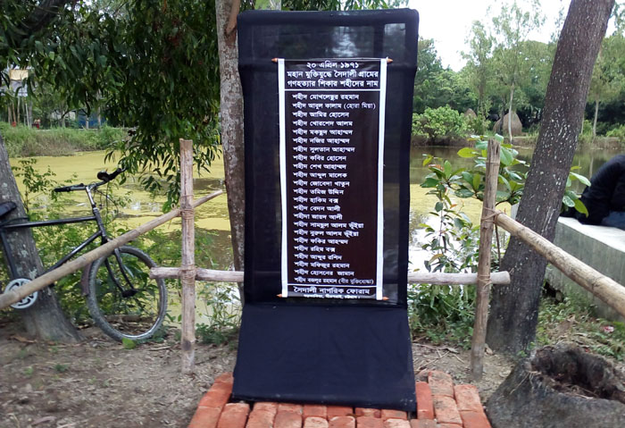 অল্পের জন্য প্রাণে বেঁচে যাওয়া মুক্তিযোদ্ধা আনোয়ার উল্লাহ্ সেদিনের স্মৃতি হাতড়ে বলেন, ‘পাকবাহিনী গ্রামের বিভিন্ন বাড়িতে আগুন দিতে শুরু করে। দৌড়ে বাড়িতে গিয়ে দেখি পাঁচজন পাকসেনা দাঁড়িয়ে আছে। সাথে আমার চাচারাও ছিলেন। দুই পাকিস্তানি সৈন্য আমাকে উদ্দেশ্যে করে বলেন, এদিকে আয়। আমি আস্তে আস্তে এগিয়ে যেতে থাকলাম। তখন আমার চোখের সামনে মেজ চাচাকে গুলি করে দিল। চাচা তখন মাটিতে লুটিয়ে পড়েন। নড়াচড়া করে ধীরে ধীরে নিস্তেজ হয়ে পড়েন।’