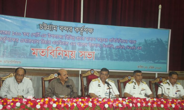 চট্টগ্রাম: ২০২১ সালের মধ্যে চট্টগ্রাম বন্দর বিশ্বের প্রথম সারির একটি ‘স্মার্ট পোর্ট’ হবে বলে আশাবাদ ব্যক্ত করেছেন চট্টগ্রাম বন্দর কর্তৃপক্ষের চেয়ারম্যান রিয়ার এডমিরাল এম খালেদ ইকবাল। ১৩০ তম বন্দর দিবস উপলক্ষে সাংবাদিকদের সাথে মতবিনিময়কালে তিনি এ আশাবাদ ব্যক্ত করেন। মঙ্গলবার দুপুরে চট্টগ্রাম বন্দর কর্তৃপক্ষের শহীদ ফজলুর রহমান মুন্সি মিলনায়তনে এ মতবিনিময় সভা অনুষ্ঠিত হয়।