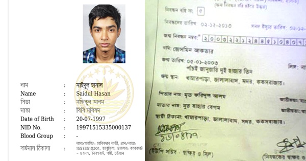 অন্যদিকে সাইদুল হাসান মিরসরাই থানার করেরহাট ভালুকিয়া গ্রামের সফিকুল আলমের পুত্র। জাতীয় পরিচয়পত্র অনুযায়ী তার জন্ম ২০ জুলাই ১৯৯৭। সে হিসেবে ২১ এপ্রিল তার বয়স দাঁড়ায় ১৯ বছর সাড়ে ৯ মাস।