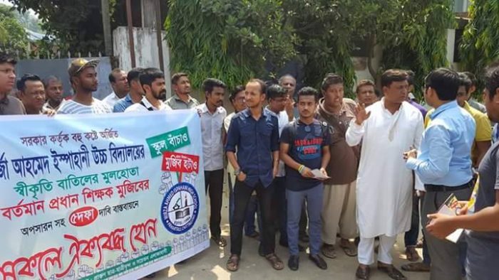 তিনি বলেন, এই স্কুলকে ১৮ কাঠা জমি মাত্র ১৮ টাকায় বরাদ্ধ দেয়া হয় একটি সেবা প্রতিষ্ঠান হিসাবে। কিন্তু আজ এই সেবা প্রতিষ্ঠানকে ব্যবসা প্রতিষ্ঠান বানিয়ে প্রধান শিক্ষক মুজিব স্বেচ্ছাচারীতার আশ্রয় নিয়েছে। তার কারণে স্কুলের একাডেমিক স্বীকৃতি বাতিল হয়েছে। প্রাক্তন ছাত্রছাত্রীরা তার এই অন্যায় মেনে নেবে না। এ কারনে এই দুর্নীতিবাজ শিক্ষকের অপসারণ দাবী করছি।