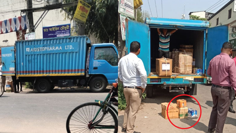 চোখে ভাসল, কাভার্ডভ্যানটার গায়ে লেখা ছিল ‘এরিস্টোফার্মা’। এটি দেশের অন্যতম স্বনামধন্য ওষুধ প্রস্ততকারী প্রতিষ্ঠান। একটি ওষুধ কোম্পানির গাড়ি থেকে নাটকীয়ভাবে অন্য পণ্যের বাক্স নামানোর দৃশ্য এবং চালকের ‘জায়গায় দাঁড়িয়ে মিথ্যাচার’ বেশ কৌতূহল জাগালো। তিনজনের মধ্যে একজনকে অনুসরণ করে দেখা গেল, সীতাকুণ্ড পৌরসভার ৭ নং ওয়ার্ডের আমিরাবাদ তিন রাস্তার মোড়ের একটি বহুতল ভবনের সামনে গিয়ে মোটরসাইকেল ও রিকশাওয়ালা দাঁড়িয়েছেন। এরপর বড় বাক্সটি দুজনে ধরাধরি করে ভবনের ভেতরে নিয়ে গেলেন।