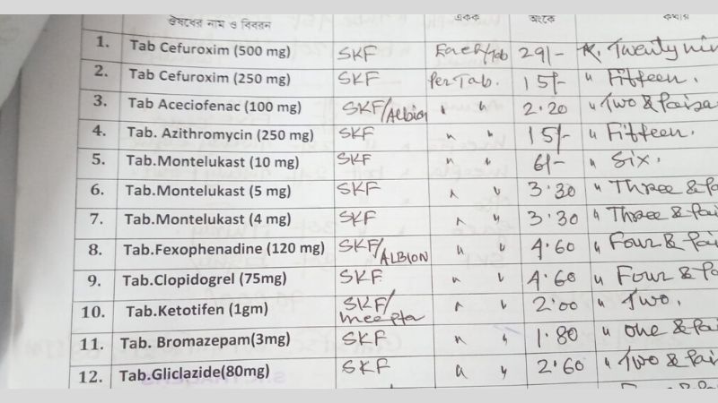 এদিকে গ্রামের সরকারি হাসপাতালগুলো কী দামে ওষুধ কেনে তা দেখার জন্য চট্টগ্রামের আনোয়ারা উপজেলা স্বাস্থ্য কমপ্লেক্সে যোগাযোগ করা হয়। অনেক চেষ্টা করে মাত্র ১২টি ওষুধের নাম ও মূল্যের তথ্য পাওয়া যায়। এতে দেখা যায়, চলতি অর্থবছরে গ্লিক্লাজাইড ৮০ মিলিগ্রাম ট্যাবলেট প্রতিটি মাত্র ২.৬০ টাকায় এসকেএফ থেকে কিনেছে হাসপাতালটি; বাজারে যার এমআরপি প্রতিটি ৭ টাকা। এখানে আরেকটি লক্ষ্যণীয় বিষয়, গ্লিক্লাজাইড ৮০ মিলিগ্রাম ট্যাবলেটটি চমেক হাসপাতাল কিনেছিল প্রতিটি মাত্র ১ টাকা ৪০ পয়সায়; অর্থ্যাৎ আনোয়ারা হাসপাতাল থেকে আরও ১ টাকা ২০ পয়সা কমে।