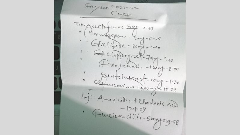 অ্যামোক্সিসিলিন+ক্লাভুল্যানিক অ্যাসিড ইনজেকশন চমেক হাসপাতাল কিনেছে ১০৪.২৯ টাকায়। এটি ‘অ্যাভলোক্লাভ’ নামে বাজারে ছেড়েছে এসিআই; এমআরপি ৩০০ টাকা। ফ্লুক্লোক্সাসিলিন ৫০০ মিলিগ্রাম ইনজেকশন ১৯.৫৮ টাকায় কিনলেও ফিলোপেন নামে এটি বাজারে দিয়েছে স্কয়ার; এমআরপি দাম ৪৫.৩ টাকা।