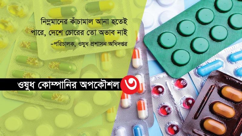 ভারত ও চীন থেকে নিম্নমানের কাঁচামাল আমদানির অভিযোগ প্রসঙ্গে অধিদপ্তরের পরিচালক আইয়ুব হোসেন বলেন, ‘নিম্নমানের কাঁচামাল যদি কেউ আনে, তার পণ্যও নিম্নমানের হবে। এ রকম কিছু যদি আমরা ধরতে পারি, তখন পণ্য এবং লাইসেন্স বাতিল করে দিই। ওষুধ বাজারে গেলে যে কেউ অভিযোগ করতে পারেন। তখন আমরা ওষুধটি পরীক্ষা করে দেখি। তারপরও বলি, নিম্নমানের কাঁচামাল আনা হতে পারে, দেশে চোরের তো অভাব নাই। এ রকম যে হয় না, শতভাগ নিশ্চয়তা আমরা দিতে পারবো না, যেহেতু আমাদের লোকবল কম।’