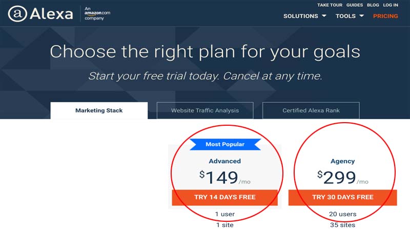 সর্বশেষ ২০২১ সালের ১৭ মে নেয়া একটি স্ক্রিনশটেও দেখা যাচ্ছে, একজন ব্যবহারকারী বা একটি ওয়েবসাইটের জন্য অ্যালেক্সার সর্বনিম্ন মাসিক ফি ১৪৯ ডলার; আবার ২০ জন ইউজার ও ৩৫টি সাইটের জন্য তাদের মাসিক ফি ২৯৯ ডলার। এই টাকায় কী কী সুবিধা অ্যালেক্সা দেয় তা এই লিংকে ক্লিক করলে জানতে পারবেন।