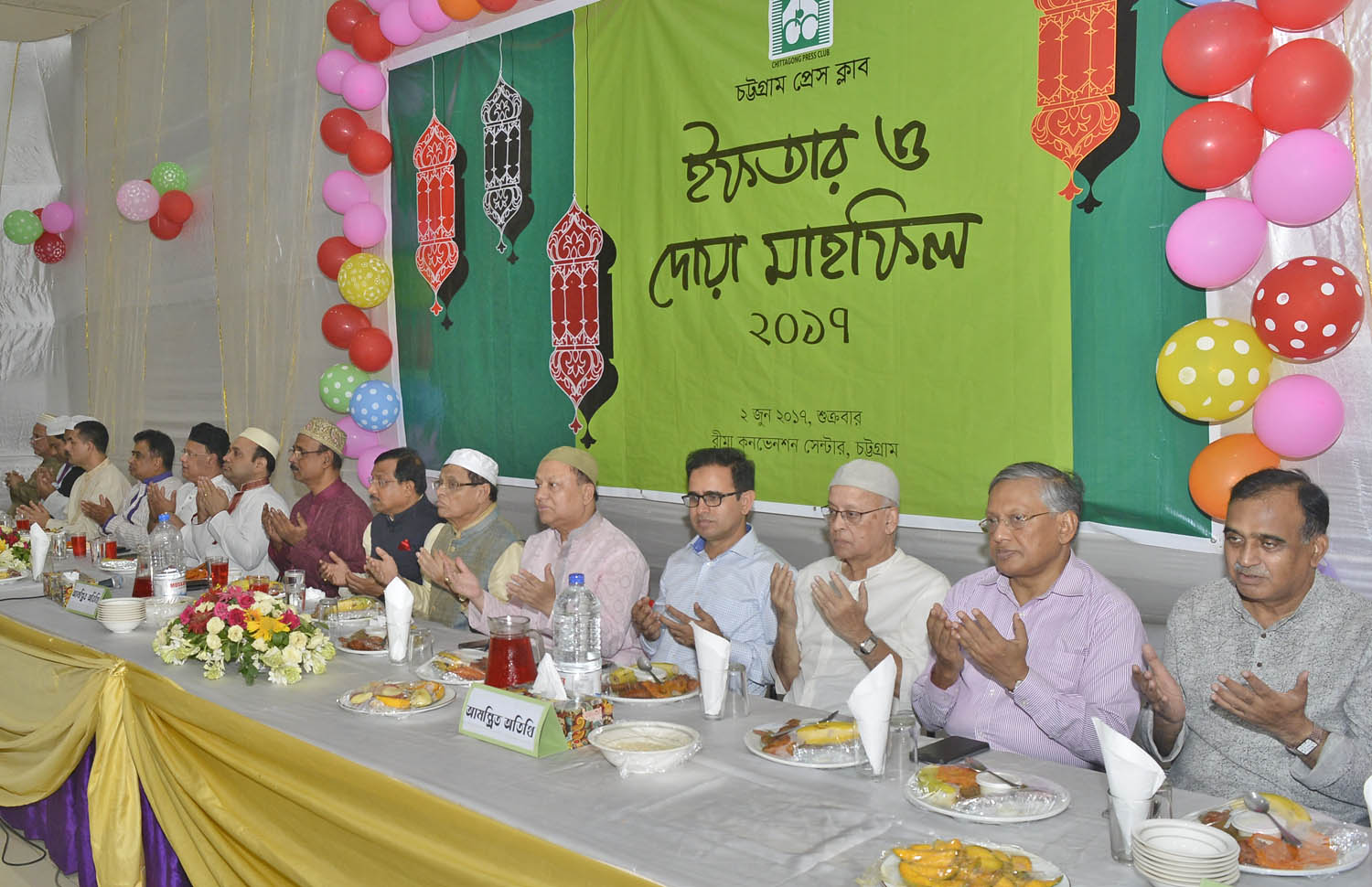 চট্টগ্রাম প্রেস ক্লাবের সাধারণ সম্পাদক শুকলাল দাশের সঞ্চালনায় অনুষ্ঠিত ইফতার মাহফলি অনুষ্ঠানে শুভেচ্ছা বক্তব্য রাখেন চট্টগ্রাম সিটি করপোরেশনের সাবেক মেয়র ও মহানগর আওয়ামী লীগের সভাপতি এবিএম মহিউদ্দিন চৌধুরী, উত্তর জেলার সভাপতি নুরুল আলম চৌধুরী, দক্ষিণ জেলার সভাপতি মোছলেম উদ্দিন আহমদ, সংসদ সদস্য শামসুল হক চৌধুরী, সংসদ সদস্য জিয়া উদ্দিন বাবলু, চট্টগ্রাম জেলা পরিষদের চেয়ারম্যান এম এ সালাম, চট্টগ্রাম মেট্রোপলিটন পুলিশ কমিশনার মো. ইকবাল বাহার, চট্টগ্রাম জেলা প্রশাসক জিল্লুর রহমান চৌধুরী, দৈনিক আজাদী সম্পাদক এম এ মালেক, সাবেক সিটি মেয়র মাহমুদুল ইসলাম চৌধুরী, সিএমপি’র অতিরিক্ত কমিশনার (ট্রাফিক) দেবদাস ভট্টচার্য, পুলিশ সুপার নুরে আলম মিনা, চট্টগ্রাম প্রেস ক্লাবের সাবেক সভাপতি আবু সুফিয়ান, রাউজান উপজেলার চেয়ারম্যান এহসানুল হায়দার চৌধুরী বাবুল, সিটি করপোরেশনের প্যানেল মেয়র চৌধুরী হাসান মাহমুদ হাসনি, পিডিবি’র চট্টগ্রাম অঞ্চলের প্রধান প্রকৌশলি প্রবীর কুমার সেন, জাতীয় পার্টির কেন্দ্রীয় প্রেসিডিয়াম সদস্য সোলায়মান আলম শেঠ, চট্টগ্রাম সাংবাদিক ইউনিয়নের (সিইউজে) সভাপতি রিয়াজ হায়দার চৌধুরী, বিএফইউজে’র সহ-সভাপতি শহীদুল আলম, সিইউজে সাধারণ সম্পাদক মোহাম্মদ আলী, বিএফইউজে’র যুগ্ম মহাসচিব তপন চক্রবর্তী, চট্টগ্রাম সাংবাদিক হাউজিং কো-অপারেটিভ সোসাইটির সভাপতি স্বপন কুমার মল্লিক, সম্পাদক হাসান ফেরদৌস, বিএনএ’র সম্পাদক ও প্রেস ক্লাবের দাতা সদস্য মিজানুর রহমান মজুমদার, প্রেস ক্লাবের জীবন সদস্য রাশেদুল আলম মামুন, হাজী মোহাম্মদ সাহাবুদ্দিন, এমদাদুল ইসলাম, অনুপ বিশ্বাস প্রমুখ।