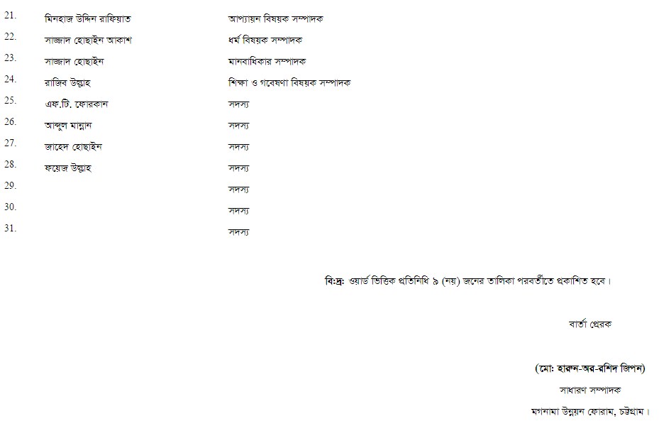 পূর্ণাঙ্গ কমিটি নিচে দেয়া হল-