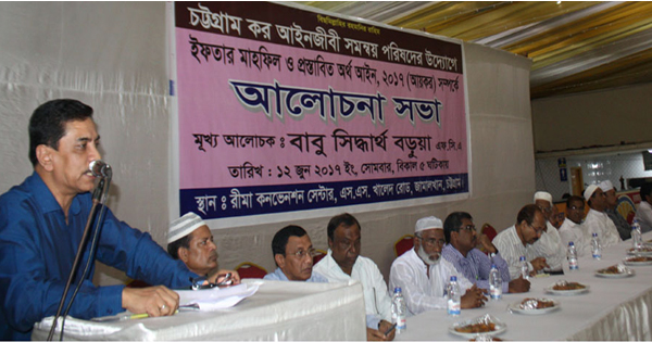 চট্টগ্রাম : চট্টগ্রাম কর আইনজীবী সমন্বয় পরিষদের উদ্যোগে প্রস্তাবিত অর্থ আইন ২০১৭ (আয়কর) ও ইফতার মাহফিল গত সোমবার বিকেলে নগরীর রীমা কনভেশন হলে পরিষদের সভাপতি আলহাজ্ব এড.এম.এ. বাশার তালুকদারের সভাপতিত্বে অনুষ্ঠিত হয়।
