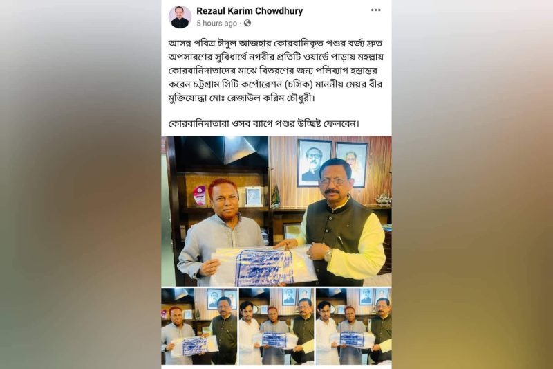 এদিকে, জনপ্রতিনিধিদের হাতে এসব পলিথিন ব্যাগ তুলে দেওয়ার বেশ কয়েকটি ছবি দিয়ে সামাজিক যোগাযোগমাধ্যম ফেসবুকে প্রচার করেছেন মেয়র রেজাউল করিম চৌধুরী।
