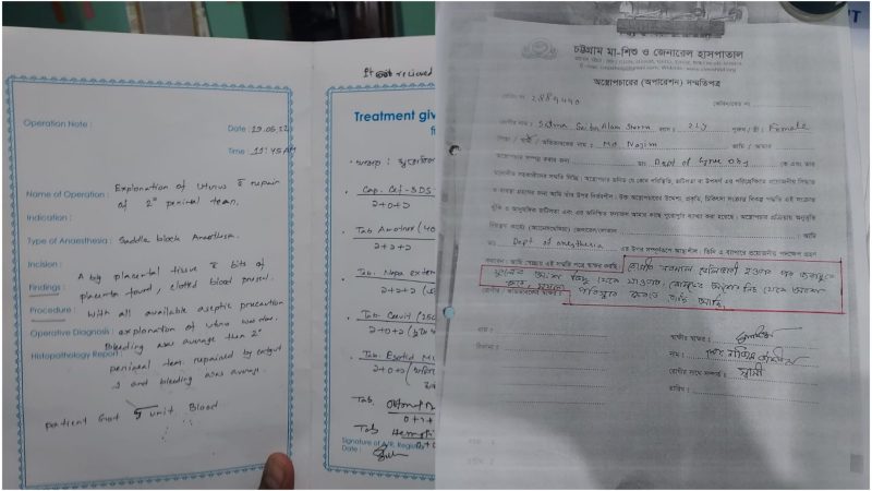 তাহলে অন্য হাসপাতালের ডাক্তার কীভাবে গর্ভফুলের কিছু অংশ পেলেন (মা ও শিশু হাসপাতালে রোগীর ছাড়পত্রের ফাইন্ডিংসে উল্লেখ আছে), জানতে চাইলে তিনি বলেন, ‘ডাক্তার নিজে থেকে বলেনি। আলট্রাসনোগ্রাফিতে বলছে এজন্য ডাক্তাররা বলেছে। আলট্রাসনোগ্রাফিতে সাধারণ ভেতরে রক্ত জমা থাকলেও ওটাকে বলে যে গর্ভফুল রয়ে গেছে। ফুল বা ফুলের কোনো অংশ থাকলে তো অবশ্যই ২৪ ঘন্টার মধ্যে রক্তপাত হবে।’