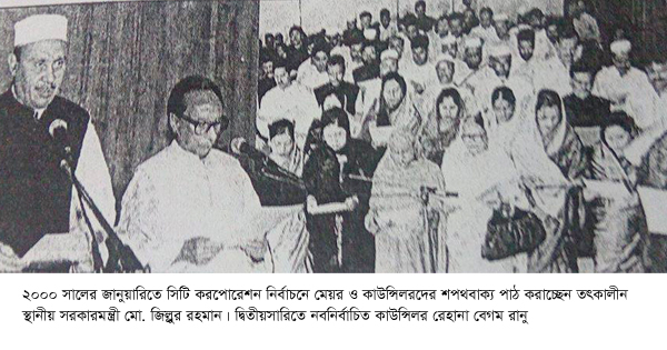 সেই যাই হোক, এবার শপথ গ্রহণের পালা। নবনির্বাচিত মেয়র, ৪১টি ওয়ার্ডের ৫৪ জন নির্বাচিত কমিশনার সবাই একসঙ্গে শপথ গ্রহণের জন্য ঢাকা যাই। আমাদের জন্য হোটেল আশরাফীর রুম ভাড়া করা হলো। হোটেলে একদিন অবস্থান করে তৎকালীন স্থানীয় সরকার, পল্লী উন্নয়ন ও সমবায়মন্ত্রী জিল্লুর রহমানের কাছে আমরা শপথ গ্রহণ করি। এরপর ধানম-িতে বঙ্গবন্ধুর প্রতিকৃতিতে ফুল দিয়ে শ্রদ্ধা জানিয়ে নির্বাচনী এলাকায় ফিরে আসি। এসেই দেখি চারদিকে সংবর্ধনার জোয়ার। দেওয়ানহাট মোড়ে মেয়র মহিউদ্দিন চৌধুরী, পাঠানটুলি ওয়ার্ডের নির্বাচিত কমিশনার আলহাজ্ব এসএম জাফর ও আমাকে সংবর্ধনা দেয় পাঠানটুলি এলাকাবাসী। এরপর আমার তিন ওয়ার্ডের পক্ষ থেকে পৃথকভাবে, রোটারী ক্লাব ও মমতাসহ নানা সংগঠন আমাকে সংবর্ধিত করে।