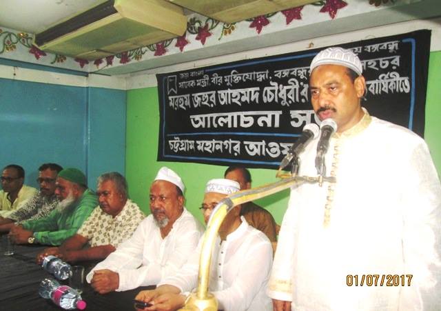 এর আগে সকালে দামপাড়ায় জহুর আহমদ চৌধুরীর কবরে পুষ্পস্তবক দেয়া হয়। অসুস্থ থাকায় নগর আওয়ামী লীগের সভাপতি ও সাবেক মেয়র এবিএম মহিউদ্দিন চৌধুরী সভায় আসেননি। সভায় নঈমউদ্দিন চৌধুরী সভাপতিত্ব করেন। সঞ্চালনায় ছিলেন নগর আওয়ামী লীগের আইন বিষয়ক সম্পাদক ইফতেখার সাইমুল চৌধুরী। বক্তব্য রাখেন যুগ্ম সাধারণ সম্পাদক নোমান আল মাহমুদ ও এম এ রশিদ, সাংগঠনিক সম্পাদক শফিক আদনান, তথ্য ও গবেষণা সম্পাদক চন্দন ধর প্রমুখ।