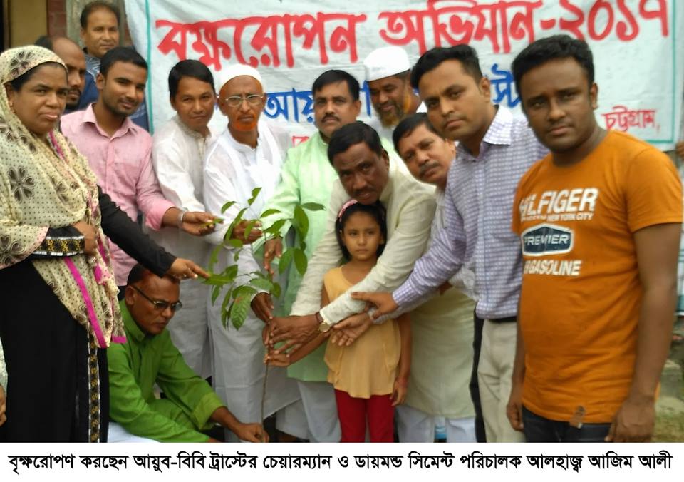 চট্টগ্রাম: আয়ুব বিবি ট্রাস্টের চেয়ারম্যান ও ডায়মন্ড সিমেন্টের পরিচালক আলহাজ্ব আজিম আলী বলেছেন, বৃক্ষরোপণের মাধ্যমে পরিবেশের ভারসাম্য রক্ষা করে আমাদের এই সুন্দর দেশ ও নগরীটাকে বাঁচানোর জন্য পরিবেশ সম্মত বৃক্ষরোপণ করতে হবে। কারণ পরিবেশকে বাঁচাতে বৃক্ষের কোনো বিকল্প নেই।