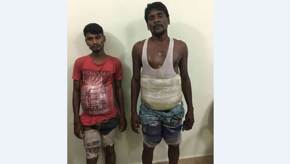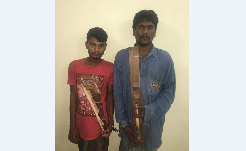 চট্টগ্রাম: শরীরে বাধা ৩০ লিটার মদ। সন্দেহ এড়াতে হাতে দা-করাত। তবুও গ্রেফতার দু’জন। ঘটনাটি নগরের বায়েজিদ বোস্তামী থানা এলাকায়।