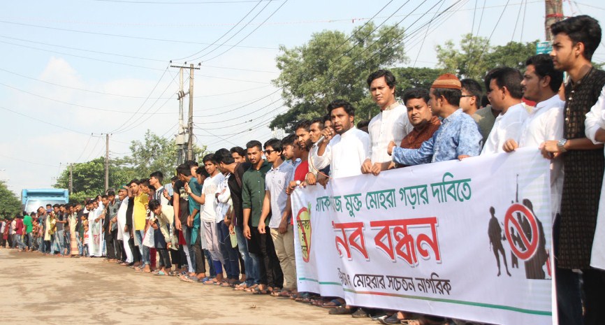 ফেসবুকে ডাক দিয়ে মাদকের বিরুদ্ধে মানববন্ধন