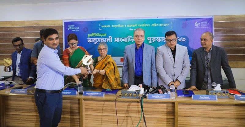 Dhaka : Transparency International Bangladesh (TIB) today awarded three journalists and Taalash, a TV programme, for their significant role in investigative reporting on corruption.