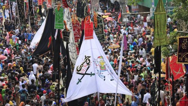 ঢাকা: বিশ্বের অন্যান্য দেশের মতো বাংলাদেশেও যথাযথ মর্যাদায় এবং ধর্মীয় ভাবগাম্ভীর্যের মধ্য দিয়ে পবিত্র আশুরা পালিত হচ্ছে। মুসলিম বিশ্বে কারবালার শোকাবহ ঘটনাকে ত্যাগ ও শোকের প্রতীক হিসেবে আশুরা পালন করা হয়। পবিত্র আশুরা উপলক্ষে শিয়া সম্প্রদায় রোববার রাজধানীতে তাজিয়া মিছিল বের করে।