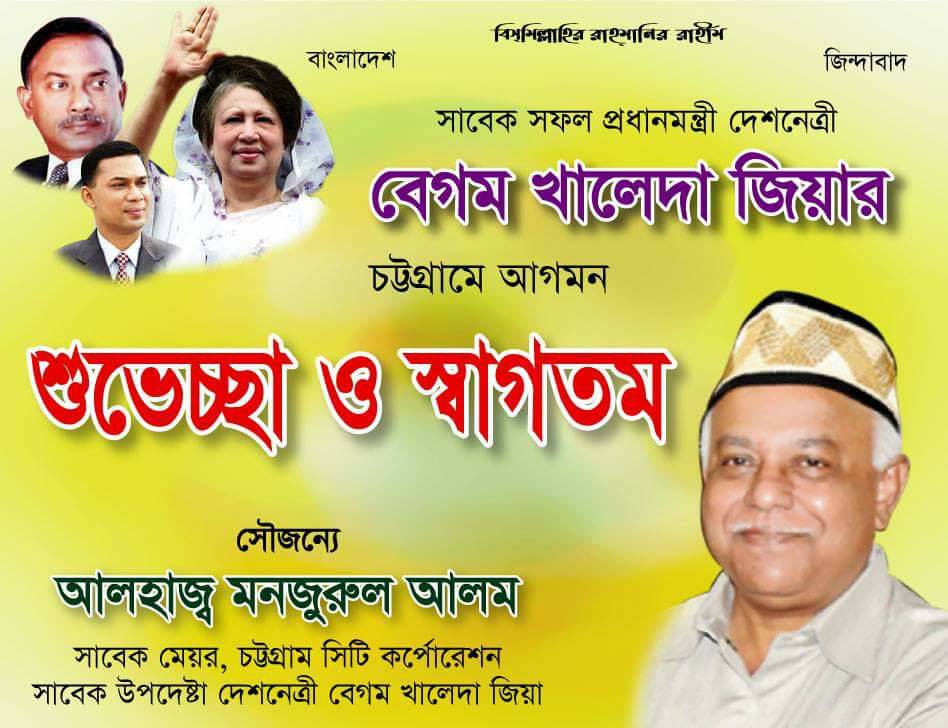 শনিবার রাতে রোহিঙ্গাদের সাহায্যার্থে উখিয়া যেতে বিশাল বহর নিয়ে বিএনপি চেয়ারপারসন চট্টগ্রাম প্রবেশ করার সঙ্গে সঙ্গে সামাজিক ফেসবুকসহ সামাজিক যোগাযোগ মাধ্যমে ঘুরছে বিএনপি চেয়ারপারসনকে স্বাগত জানিয়ে মনজুর আলমের অভিনন্দন ও শুভেচ্ছা জানানো ব্যানার! ব্যানারে তার পরিচয় উল্লেখ আছে সাবেক মেয়র ও চেয়ারপার্সনের সাবেক উপদেষ্টা হিসেবে! মনজুরের ছবি ছাড়াও বেগম খালেদা জিয়া, বিএনপির প্রতিষ্ঠাতা প্রয়াত জিয়াউর রহমান ও দলের সিনিয়র ভাইস চেয়ারম্যান তারেক রহমানের ছবি শোভা পাচ্ছে সেই ব্যানারে!