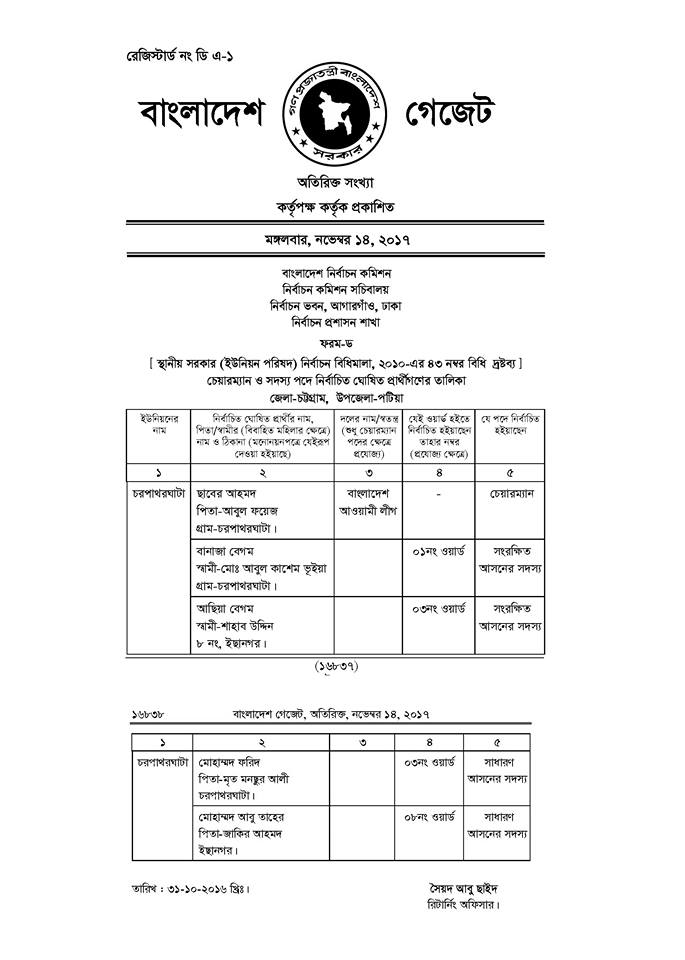 অবশেষে চরপাথরঘাটা ইউপি নির্বাচনের গেজেট প্রকাশ