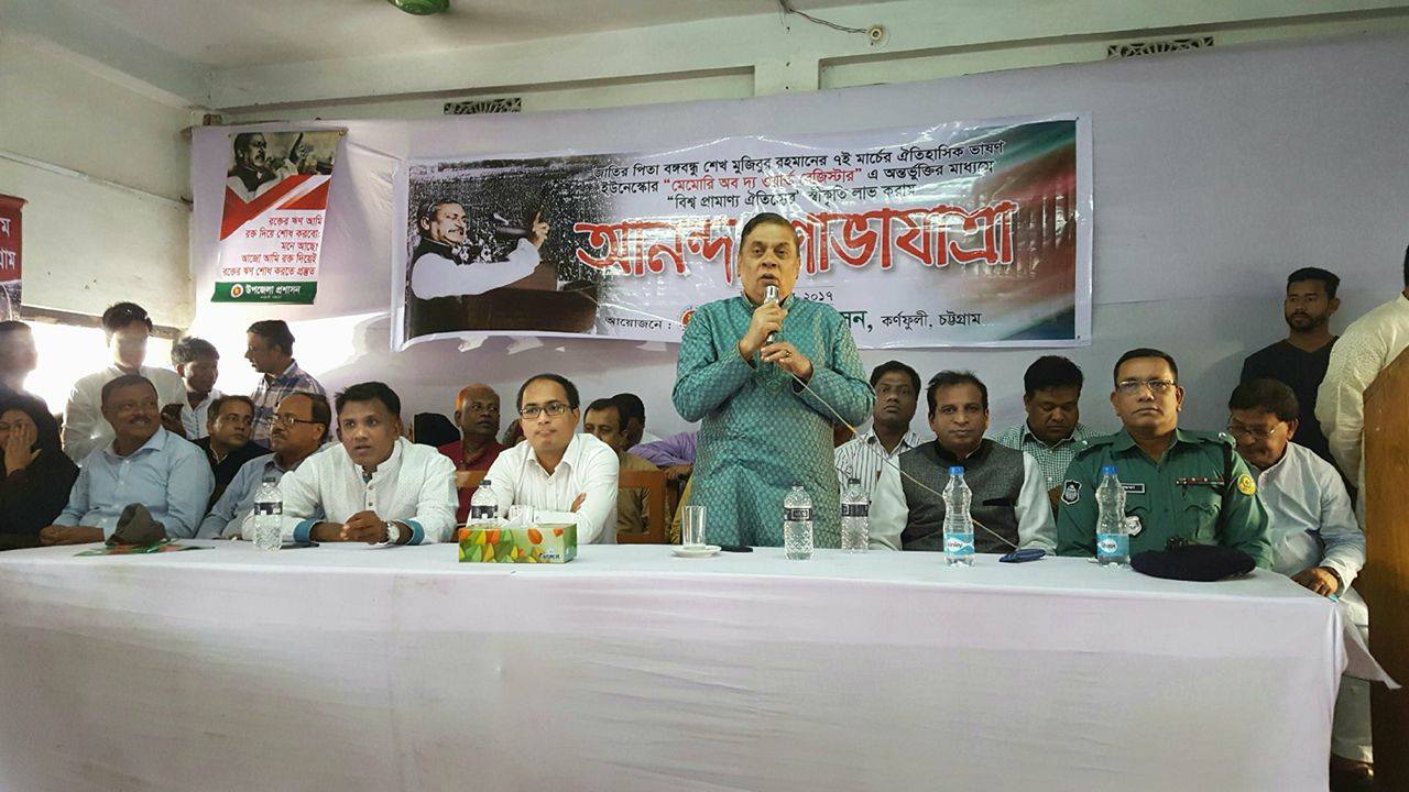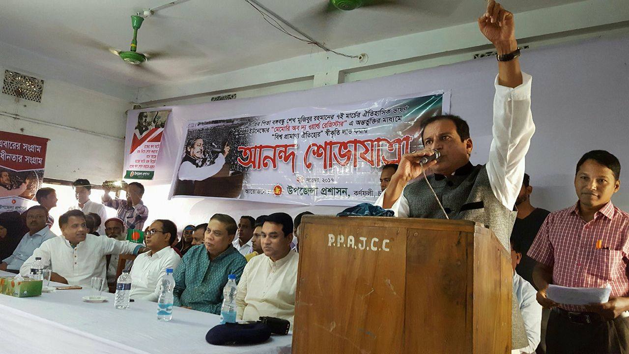 বঙ্গবন্ধু শেখ মুজিবর রহমান এর ৭ই মার্চের ঐতিহাসিক ভাষণ ‘বিশ্বপ্রামাণ্য ঐতিহ্য’ হিসেবে স্বীকৃতি উদযাপন উপলক্ষে শনিবার কর্ণফুলী উপজেলা প্রশাসন আয়োজিত আনন্দ শোভাযাত্রার পরবর্তী সভায় বক্তারা এ দাব জানান।