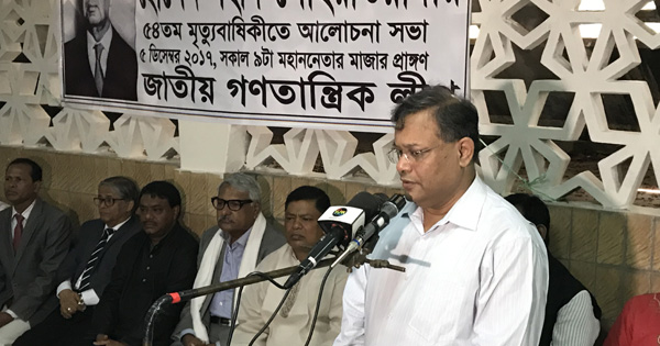মঙ্গলবার (৫ ডিসেম্বর) সকালে জাতীয় গণতান্ত্রিক লীগ আয়োজিত হোসেন শহীদ সোহরাওয়ার্দীর ৫৪তম মৃত্যুবার্ষিকী উপলক্ষে জাতীয় তিন নেতার মাজারে এক আলোচনা সভায় প্রধান অতিথির বক্তব্যে তিনি এ কথা বলেন।