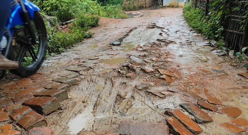 দুই বছর আগে আঁধায়েরঠেক থেকে ভূঁইয়াবাড়ি পর্যন্ত মাত্র ১৬০ ফুটের একটি অংশে দায়সারাভাবে ইট বিছানো হলেও বাকি সড়কের অবস্থা তথৈবচ। বর্ষার পানিতে গর্তগুলো ভরে গিয়ে পরিণত হয়েছে মৃত্যু-ডোবায়।