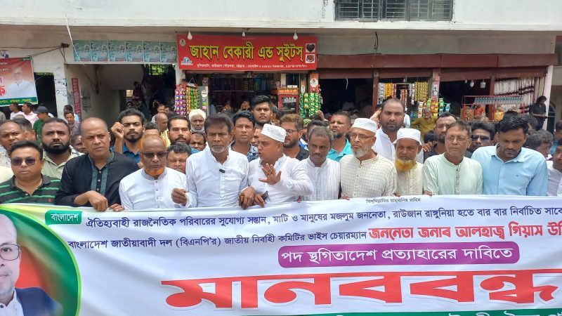 রাউজান উপজেলা বিএনপি, যুবদল, ছাত্রদল ও এর অঙ্গসংগঠনের ব্যানারে আয়োজিত এই মানববন্ধনে দলীয় নেতাকর্মীদের পাশাপাশি বিভিন্ন শ্রেণি-পেশার মানুষ এবং সাধারণ নারী-পুরুষকেও অংশ নিতে দেখা গেছে।
