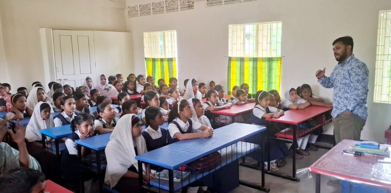 বুধবারের (৫ নভেম্বর) সকালটা ফটিকছড়ির আজিমনগর সরকারি প্রাথমিক বিদ্যালয়ের জন্য আর দশটা দিনের মতো ছিল না। ক্লাসের সুনসান নিরবতার মাঝে কোমলমতি শিক্ষার্থীরা মন্ত্রমুগ্ধের মতো শুনছিল এক আগন্তুকের কথা। তিনি বলছিলেন তার নিজের ছেলেবেলার গল্প, এক টিনের চালার ঘর থেকে আজকের অবস্থানে পৌঁছানোর গল্প।
