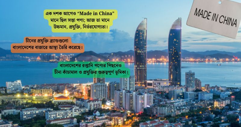 সাংস্কৃতিক আদান-প্রদানের আরেকটি বড় সাফল্য হলো ‘মেইড ইন চায়না’ ট্যাগটির ধারণাগত পরিবর্তন। এক দশক আগেও চট্টগ্রামের খাতুনগঞ্জ বা রিয়াজউদ্দিন বাজারের ব্যবসায়ীদের কাছে এই ট্যাগটি সস্তা বা কম মানসম্পন্ন পণ্যের প্রতীক ছিল। কিন্তু আজ সেই ধারণা সম্পূর্ণ বদলে গেছে। এই বদলের পেছনে বড় ভূমিকা রেখেছে চীনের প্রযুক্তি ব্র্যান্ডগুলো।