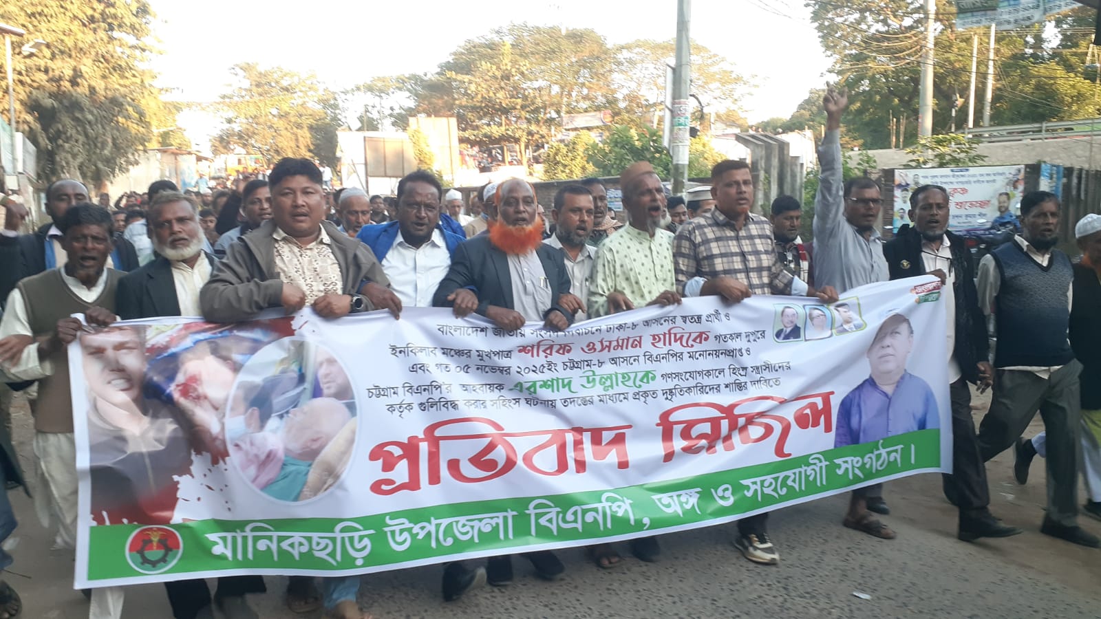 ইনকিলাব মঞ্চের মুখপাত্র ও ঢাকা-৮ আসনের স্বতন্ত্র প্রার্থী শরীফ ওসমান হাদির ওপর হামলার প্রতিবাদে খাগড়াছড়ির মানিকছড়িতে বিক্ষোভ মিছিল ও সমাবেশ করেছে বিএনপি।