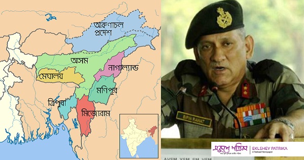 ভারতের উত্তর-পূর্বাঞ্চলে পরিকল্পিতভাবে বাংলাদেশ থেকে লোক ঢোকানো হচ্ছে বলে অভিযোগ তুলেছেন ভারতের সেনাপ্রধান জেনারেল বিপিন রাওয়াত। তাঁর অভিযোগ, এর পেছনে রয়েছে পাকিস্তান। চীনের মদদে একটি ছায়াযুদ্ধের অংশ হিসেবে ভারতের ওই এলাকাকে ‘অস্থির’ করে তুলতেই এ কাজ করা হচ্ছে।