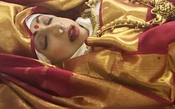মুম্বাই : সোনালী পাড়ের লাল শাড়ি, ঠোঁটে লাল লিপস্টিক। কপালে লাল টিপ- যেন এক প্রতিমা। এমন সাজেই রাষ্ট্রীয় মর্যাদায় মুম্বাইয়ে শেষ যাত্রায় চললেন বলিউড সুপারস্টার শ্রীদেবী। অশ্রুসিক্ত চোখে তাকে শেষ বিদায় জানালেন শোকাহত ভক্তকুল।