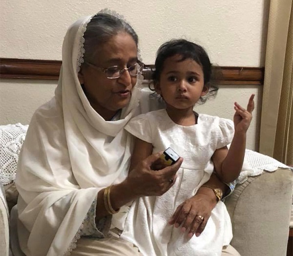 আলাইনাকে কোলে নিয়ে সময় কাটানোর সঙ্গে সেসময় তাকে নিয়ে খেলায়ও মেতে ওঠেন, গল্প করেন তিনি। সঙ্গে তাকে ঘুরিয়ে বাসভবনের ভেতরে থাকা কৃত্রিম একুরিয়ামও দেখান প্রধানমন্ত্রী।