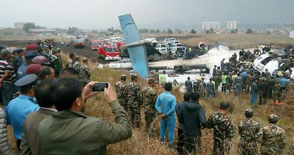 ত্রিভুবন আন্তর্জাতিক বিমানবন্দরের মুখপাত্র প্রেম নাথ ঠাকুর বলেছেন, রানওয়েতে অবতরণের চেষ্টার সময় বিমানটিতে আগুন ধরে যায়। পরে বিমানবন্দরের পাশের একটি ফুটবল মাঠে বিমানটি বিধ্বস্ত হয়।