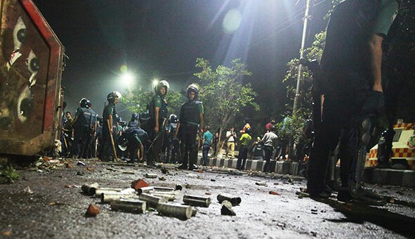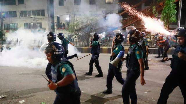 শাহবাগ ছাড়ার পর বিশ্ববিদ্যালয়ের টিএসসি সংলগ্ন এলাকায় রাতে খণ্ড খণ্ড বিক্ষোভ চলছিল; পুলিশও তাদের লক্ষ্য করে কাঁদুনে গ্যাস ও রাবার বুলেট ছোড়ে।