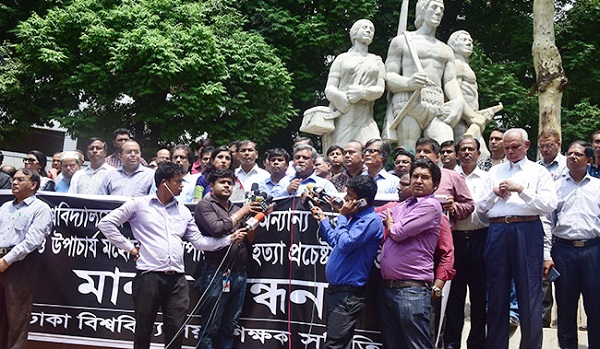 মানববন্ধনে অন্যদের মধ্যে আরো উপস্থিত ছিলেন বিশ্ববিদ্যালয়ের সিনেট সদস্য অধ্যাপক নিলীমা আক্তার, ক্রিমিনোলজি বিভাগের অধ্যাপক জিয়াউর রহমান, অধ্যাপক ড. মুহম্মদ সামাদসহ বিভিন্ন বিভাগের শিক্ষকসহ সমিতির নেতৃবৃন্দ।