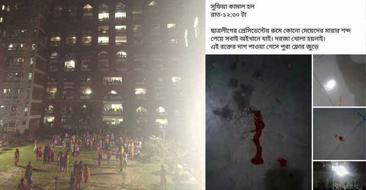 সাধারণ শিক্ষার্থীদের অভিযোগ, হল ছাত্রলীগের সভাপতি ইসরাত জাহান এশার ৩০৭ নম্বর রুমে মারধর চলছে। হলের এক শিক্ষার্থীর মাথায় সেলাই দেয়া হয়েছে। দুই ছাত্রীকে ঢাকা মেডিকেল কলেজ (ঢামেক) হাসপাতালে ভর্তি করা হয়েছে।