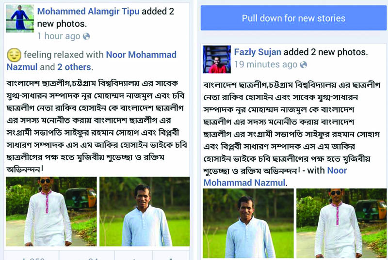 ফেসবুকে স্ট্যাটাস দিয়ে নূর মোহাম্মদ নাজমুলকে শুভেচ্ছা ও অভিনন্দন জানিয়েছেন চট্টগ্রাম বিশ্ববিদ্যালয় ছাত্রলীগের সভাপতি আলমগীর টিপু ও সাধারণ সম্পাদক ফজলে রাব্বী সুজন।