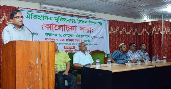 তিনি মঙ্গলবার পুরকৌশল বিভাগের সেমিনার কক্ষে ঐতিহাসিক মুজিবনগর দিবস উপলক্ষে আয়োজিত এক আলোচনা সভায় প্রধান অতিথির বক্তব্যে এসব কথা বলেন।