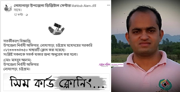 ‘লোহাগাড়া উপজেলা ডিজিটাল সেন্টার’ নামে একটি ফেসবুক পেজ-এ ইউএনও মো.মাহবুব আলমের নিজস্ব ফেসবুক আইডি যুক্ত করে লেখা হয়েছে, “সতর্কীকরণ বিজ্ঞাপ্তি: উপজেলা নির্বাহী অফিসার, লোহাগাড়া, চট্টগ্রাম মহোদয়ের সরকারি ০১৭৩৩৩৩৪৩৫০ নাম্বারটি ক্লোন করা হয়েছে। সংশ্লিষ্ট সকলকে সতর্ক থাকার জন্য অনুরোধ করা হলো।”