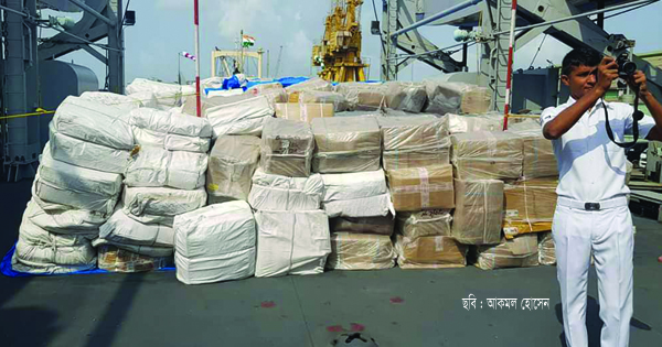 জানা যায়, ভারতের নৌবাহিনীর জাহাজ ‘ঐরাবত’ কমান্ডার এ অশোকের নেতৃত্বে ত্রাণসামগ্রী নিয়ে গত ৫ মে বিশাখাপত্তম বন্দর থেকে রওনা দিয়ে মঙ্গলবার (৮ মে) চট্টগ্রাম বন্দরে পৌঁছে। জাহাজটির স্থানীয় শিপিং এজেন্ট এমএম ইস্পাহানী লিমিটেড।